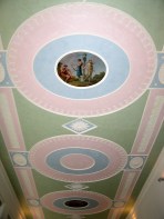 The RSA comprises 2,4,6 and 8 John Adam St, together with 18 Adam St, originally the Adelphi Tavern and later the Adelphi Hotel. In Dickens’ Pickwick Papers, Emily Wardle fled from her angry father and met her lover Mr Snodgrass there. I like to think of them admiring the ravishing Adam ceiling with its delicate plasterwork and painted panel showing Pan celebrating the feast of Bacchus.Numbers 2 and 4 were originally private houses, and very pretty they would have been, too, with their classical Adam dimensions, elegant staircases and carved Adam fireplaces. No 4 still has its wonderful painted Adam ceiling.