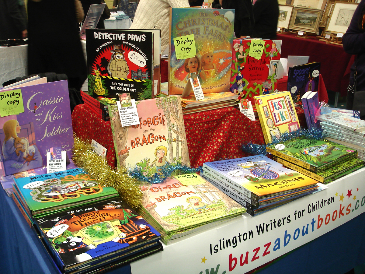 Islington Writers for Children (IWFC) were out in force yesterday evening (well, three of us were), when Marion, Lynda and I braved the severe weather conditions to advance the cause of children’s literacy, promote the blog and sell our books.