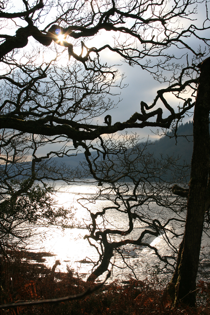 Although this was a grey day in winter, the colours were varied and vivid as the blocks in a paint box. Bark covered with yolk-yellow lichen. Beetroot red branches in the distant trees. A carpet of copper oak leaves. Even the river mud exposed at low tide had the patina of old silver.