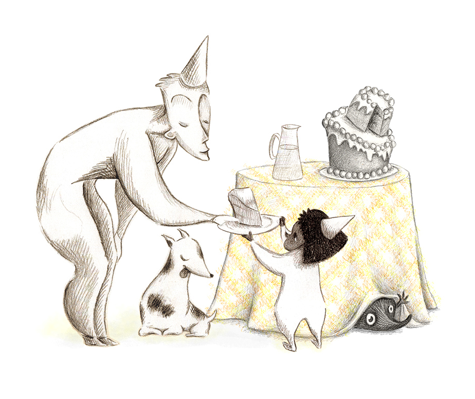 She is currently working on the picture book “Unreal Neil”:- Finn blames everything on Neil, an imaginary creature that he has just invented, but sometimes things take on a life of their own.. “Unreal Neil” humorously explores the idea that making up stories can have consequences. Finn’s fibs come back to bite him as Neil perversely materializes and havoc ensues. After a series of disturbing events, a ruined birthday party is the catalyst for Finn to come clean and apologise. And as harmony is restored, Neil finally disappears (in the wake of another teller of tall tales – Posey Perkins).