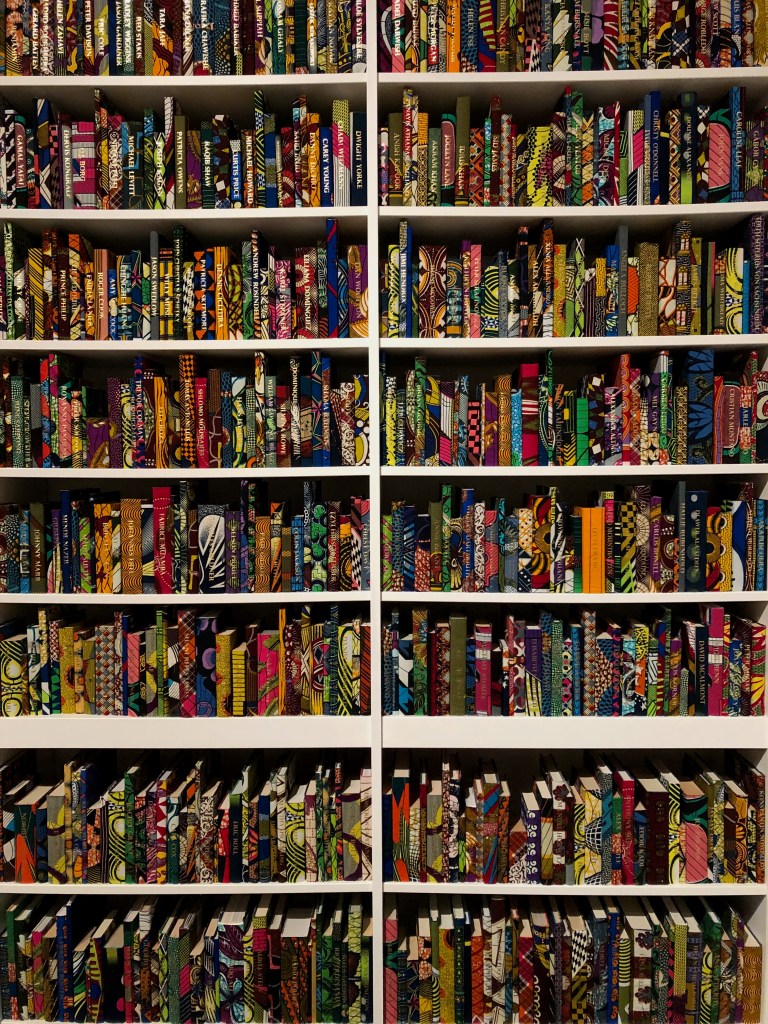 The books are bound in African wax print fabric and the names of first or second-generation immigrants to Britain, both celebrated and unknown, are printed in gold on the spines of 2,700 of the books. Some spines are left unmarked symbolising that the story of immigration in Britain is still being written.