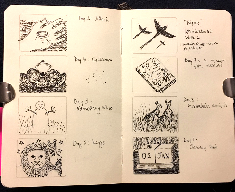 - Look at what other illustrators are doing on Instagram for inspiration: John Shelley’s 365 days of 1’’ drawings inspired me to do my tiny ink drawing a day.